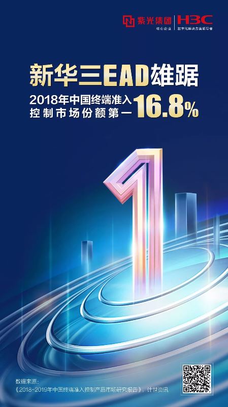 近日,權威ICT市場研究機構計世資訊(CCW Research)發布的《中國終端準入控制產品市場研究白皮書》顯示,紫光旗下新華三集團憑借優異的市場能力和產品技術創新力位列領導者象限,以16.8%市場份額位居2018年中國終端準入控制市場第一,占有率超過第二名和第三名的總和。